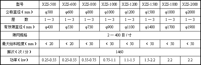 XZS系列旋振篩是在S49系列旋振篩的基礎(chǔ)上,吸收國(guó)內(nèi)外先進(jìn)技術(shù),并采用先進(jìn)的加工工藝而設(shè)計(jì)的高精度篩分過(guò)濾機(jī)械,它是以立式振動(dòng)電機(jī)或?qū)S眉ふ衿鳛檎駝?dòng)源,立式振動(dòng)電機(jī)(或激振器)上、下端裝有偏心重錘,可產(chǎn)生水平、垂直、傾斜的三次元運(yùn)動(dòng),通過(guò)調(diào)節(jié)上、下偏心重錘的相位角,改變物料在篩面上的運(yùn)動(dòng)軌跡以達(dá)到篩分各種物料的目的。該產(chǎn)品適用于任何粉、粒、液的篩分和過(guò)濾的行業(yè)。廣泛用于化工、醫(yī)藥粉、液、涂料、顏料、化妝品、油脂、樹(shù)脂、陶瓷漿、粘土泥漿、生石灰、耐火材料粉末,冶金粉末、電磁粉末、研磨粉、果汁、飲料、食糖、食鹽、味精、調(diào)料、奶粉、淀粉、面粉、米粉、碳粉、石墨粉、錳粉、碳酸鋰、助溶劑、滅火劑以及環(huán)保行業(yè)的污水、廢水處理的工藝過(guò)程中的篩分、過(guò)濾。