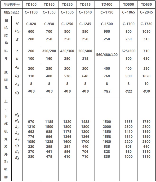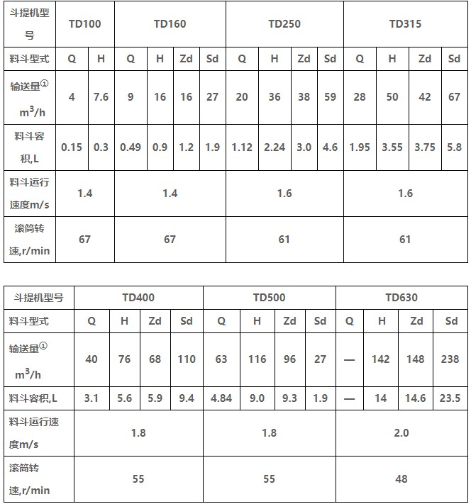 TD型垂直斗式提升機(jī)由運(yùn)行部分(料斗與牽引膠帶)、帶有傳動(dòng)滾筒的上部區(qū)段、帶有拉緊滾筒的下部區(qū)段、中間機(jī)殼、驅(qū)動(dòng)裝置、逆止制動(dòng)裝置等組成,適用于向上輸送松散密度ρ<1.5t/m3粉狀、粒狀和小塊狀的無(wú)磨琢性和半磨琢性散狀物料,如煤、砂、焦末、水泥、碎礦石等。本機(jī)的特點(diǎn)為快速離心卸料:并采用橡膠輸送帶為牽引構(gòu)件,故不適于輸送大塊磨琢性及掏取阻力大的物料。被輸送物料的溫度不得超過60℃,如采用耐熱橡膠帶時(shí)溫度不超過200℃。與D型斗式提升機(jī)相比,具有輸送效率高,料斗型式多等特點(diǎn)。