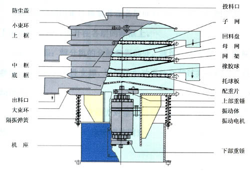 XZS系列旋振篩是在S49系列旋振篩的基礎(chǔ)上,吸收國內(nèi)外先進技術(shù),并采用先進的加工工藝而設(shè)計的高精度篩分過濾機械,它是以立式振動電機或?qū)S眉ふ衿鳛檎駝釉?,立式振動電機(或激振器)上、下端裝有偏心重錘,可產(chǎn)生水平、垂直、傾斜的三次元運動,通過調(diào)節(jié)上、下偏心重錘的相位角,改變物料在篩面上的運動軌跡以達(dá)到篩分各種物料的目的。該產(chǎn)品適用于任何粉、粒、液的篩分和過濾的行業(yè)。廣泛用于化工、醫(yī)藥粉、液、涂料、顏料、化妝品、油脂、樹脂、陶瓷漿、粘土泥漿、生石灰、耐火材料粉末,冶金粉末、電磁粉末、研磨粉、果汁、飲料、食糖、食鹽、味精、調(diào)料、奶粉、淀粉、面粉、米粉、碳粉、石墨粉、錳粉、碳酸鋰、助溶劑、滅火劑以及環(huán)保行業(yè)的污水、廢水處理的工藝過程中的篩分、過濾。